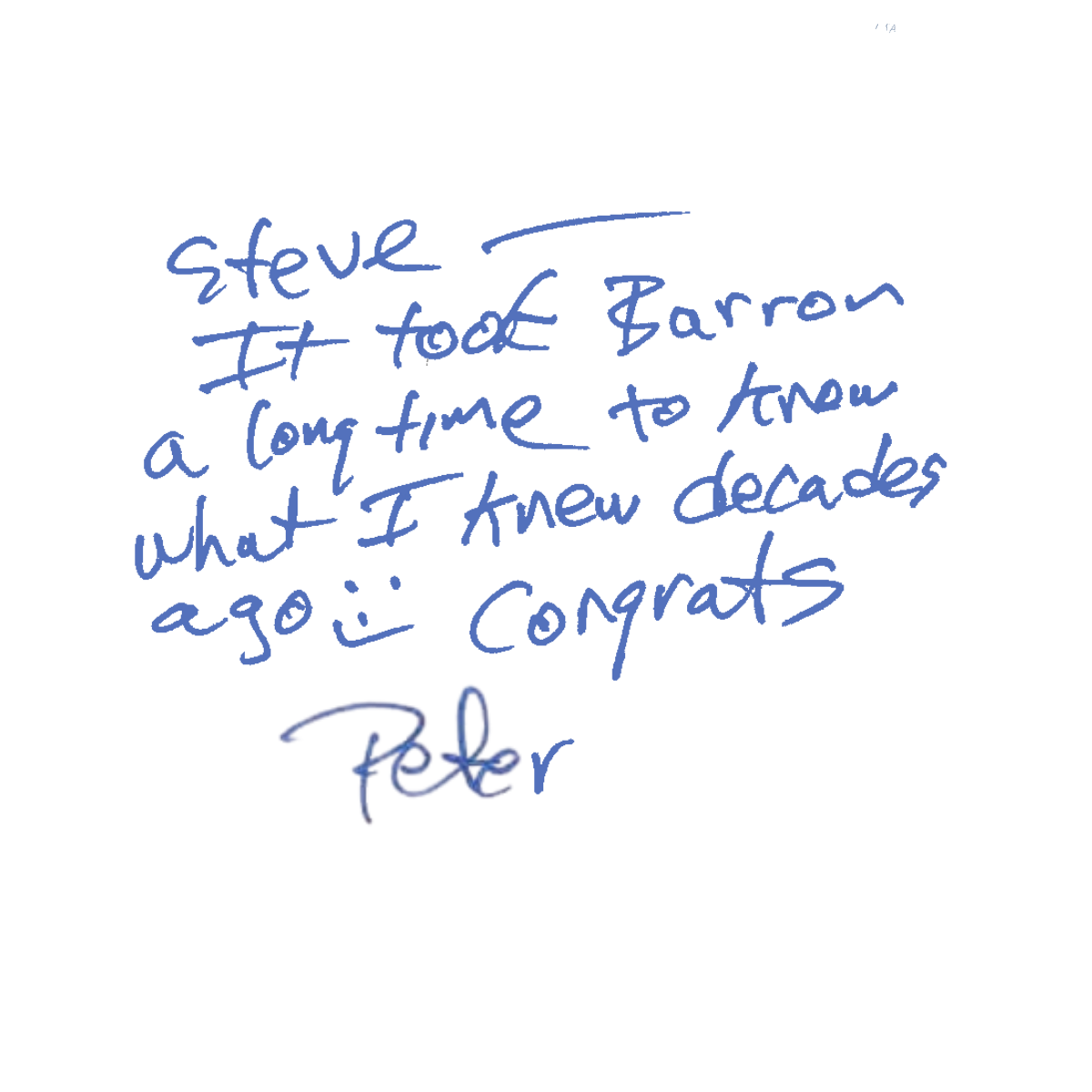 “It took Barron a long time to know that I knew decades ago. Congrats”